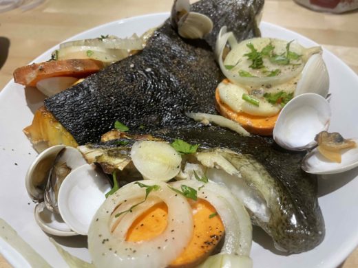 ヒラメと貝のオーブン焼き / Pregado a Bulhão Pato